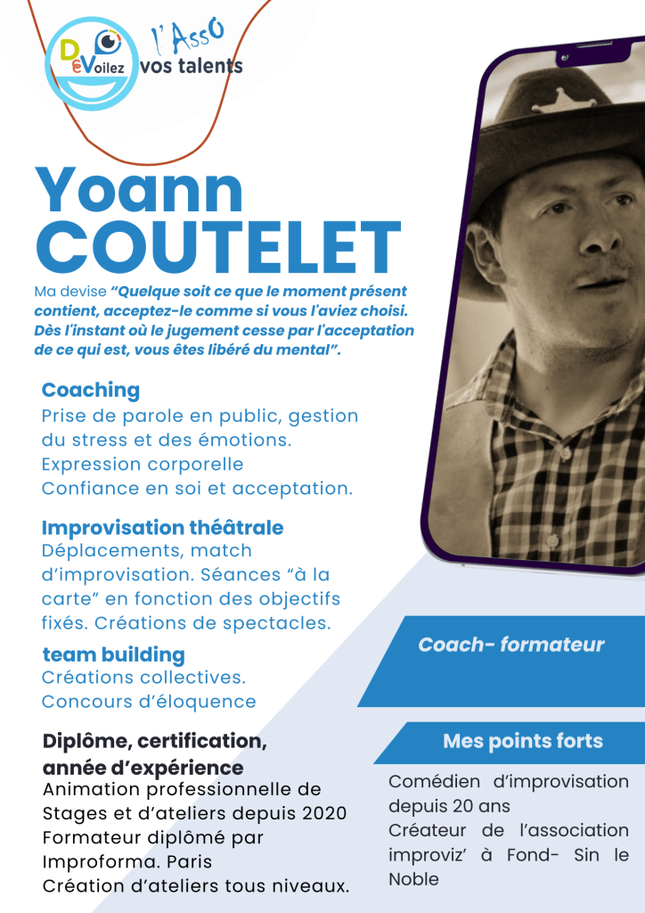 Loin des planches classiques et des textes appris par cœur, le théâtre d’improvisation place l’individu au cœur de l’instant présent. Il ne s’agit pas de jouer un rôle, mais de s’autoriser à être pleinement soi, dans l’écoute, la spontanéité, et l’interaction avec l’autre.